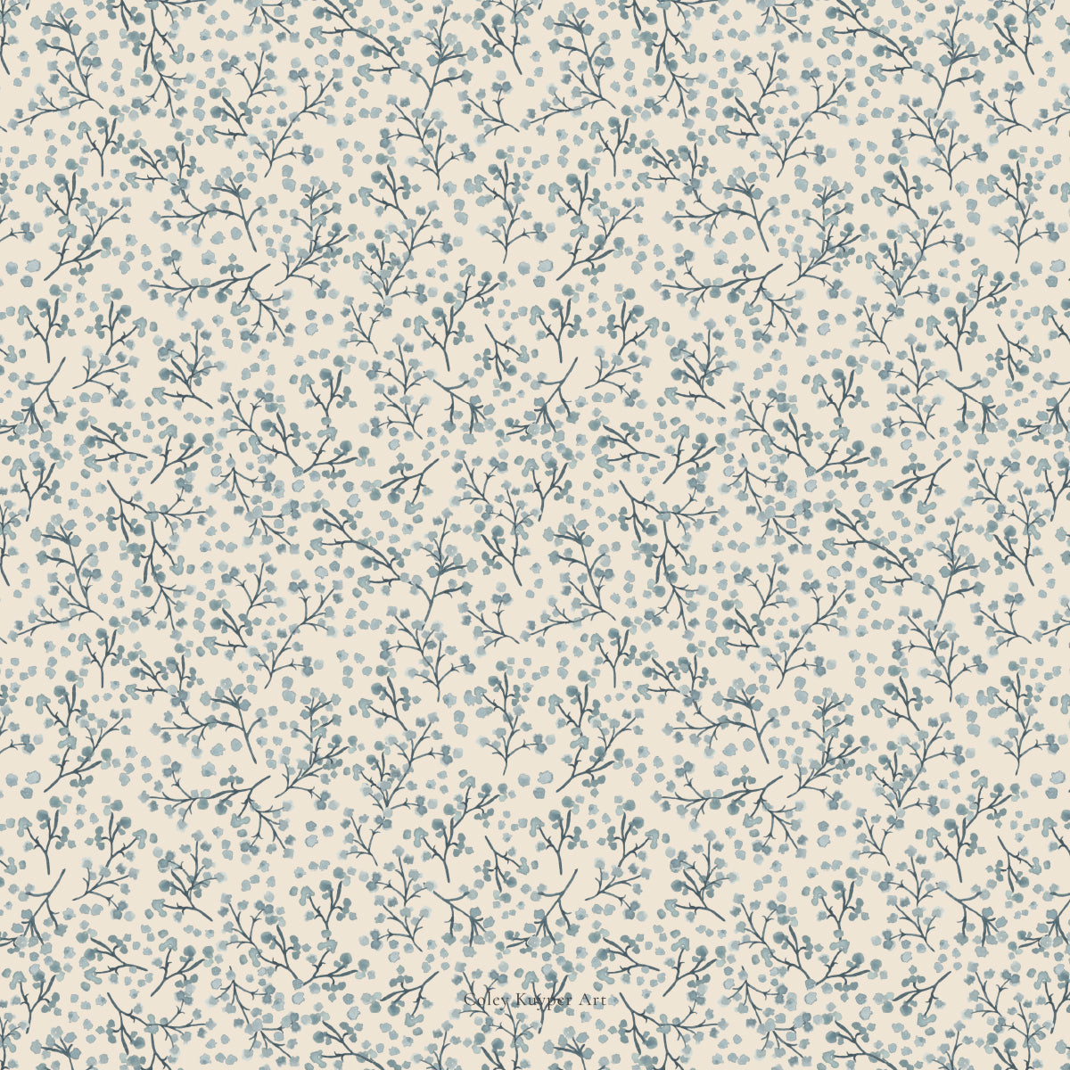 - Blue watercolor florals on a soft neutral background